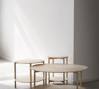 Ein vielseitiger Tisch, mit weichen Linien aus warmem Holz gefertigt.