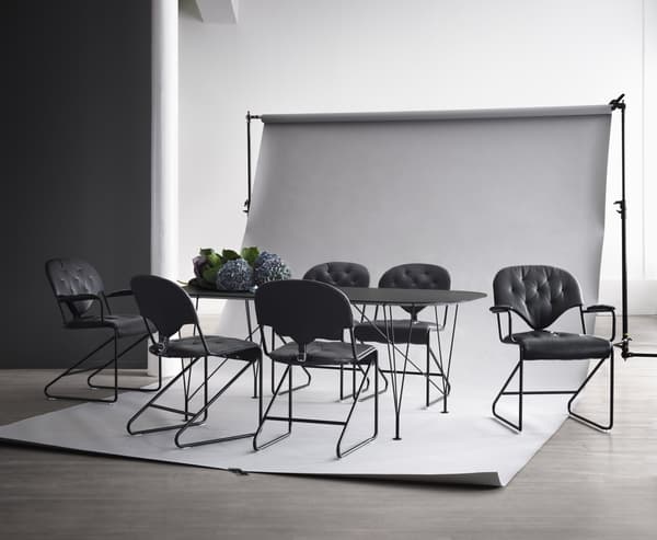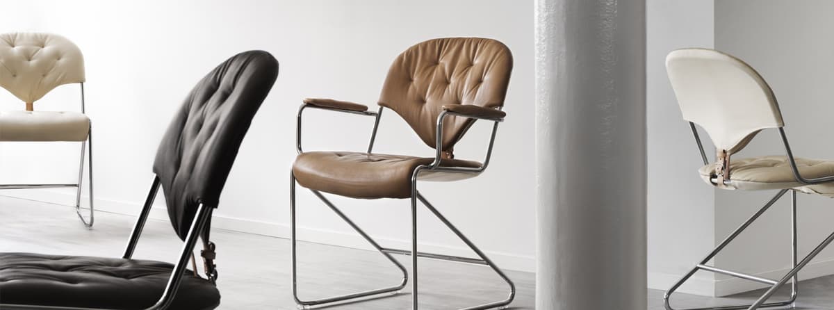 Een klassieke fauteuil ontworpen door Sam Larsson, die gemakkelijk aan de eettafel of aan uw bureau kan worden geplaatst.
